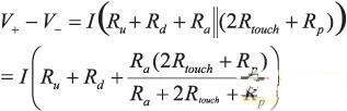 緊密捏合后,并聯(lián)電阻趨于 0,Ru + Rd提高到總電阻,因此電壓增大到: