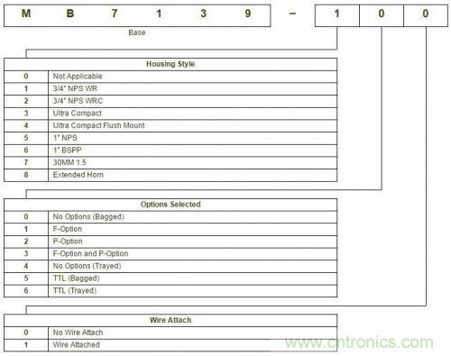 所有的零件號(hào)碼都是一個(gè)六字符的組合,后面是一個(gè)破折號(hào)和一個(gè)三位數(shù)的產(chǎn)品代碼。請(qǐng)查看下面的表格,以獲得關(guān)于三位數(shù)產(chǎn)品代碼的更多信息.