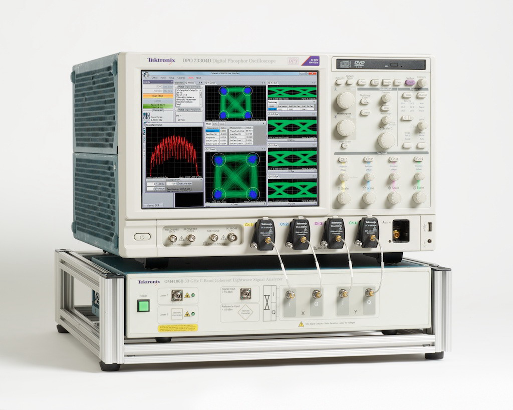 傳統(tǒng)上,光調(diào)制分析儀可與許多種示波器機(jī)型搭配使用。OM4106D是第一個(gè)與高速示波器緊密整合的光調(diào)制分析儀,這讓它的性能可以測(cè)試市場(chǎng)上速度最快的相干光波系統(tǒng)。DPO73304D示波器提供33GHz實(shí)時(shí)帶寬,雙通道采樣率為100 GS/s,四通道采樣率為50 GS/s。該示波器還有一個(gè)新 DataStore 公共接口,為分析任務(wù)提供2倍的從數(shù)字轉(zhuǎn)換器到實(shí)現(xiàn)OM4106D算法的 MATLAB 應(yīng)用的數(shù)據(jù)吞吐率。